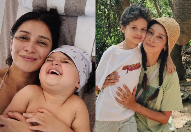 Ravshana Kurkova posted a series of vacation photos on Instagram*. The 45-year-old actress is currently relaxing by the sea with her children: five-year-old son Gaspar and two-year-old daughter Samira.