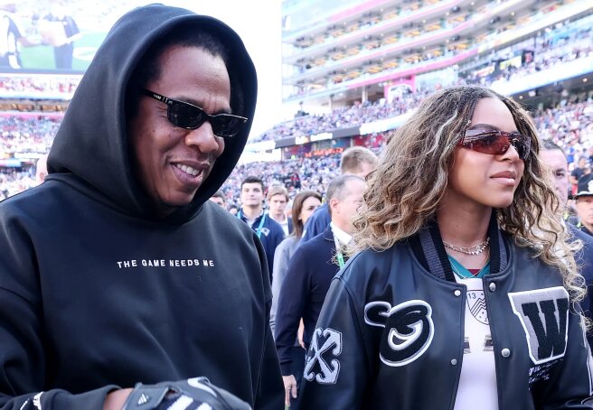 Beyoncé and Jay-Z's 14-year-old daughter Blue Ivy Carter (whose name was found in Jeffrey Epstein's files) appeared at the stadium wearing an Off-White jacket, a Balenciaga bag, and sunglasses, while Kim Kardashian and her new boyfriend Lewis were in the stands, among other celebrities. Hamilton.