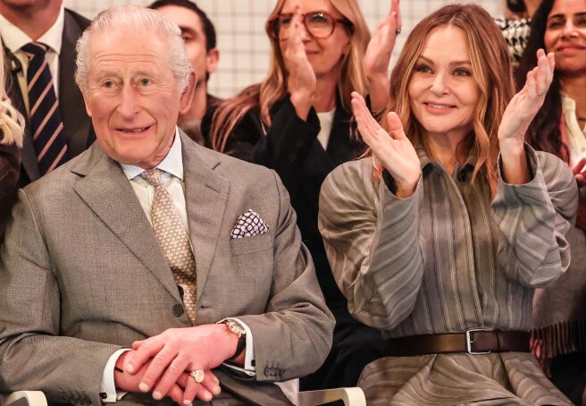 The monarch's arrival at the show was kept secret until the very end. The King, wearing a gray suit and tie, entered the hall with British Fashion Council CEO Laura Weir, sat in the front row with fashion designer and Paul McCartney's daughter Stella, and appeared to be in good spirits. This was Charles III's first visit to Fashion Week. Before the show, he toured McCartney's exhibition dedicated to sustainable British innovation, and afterwards, he chatted with the brand's founder, Tolu Cocker, and other young designers.