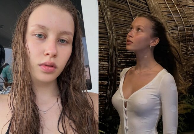 20-year-old Dmitrienko was not in the frame, so it is quite possible that he took at least some of the photos of his beloved himself. In one of the photos, Anna appeared without makeup. In others, she poses in the sea in a bikini and a dress with a deep neckline.