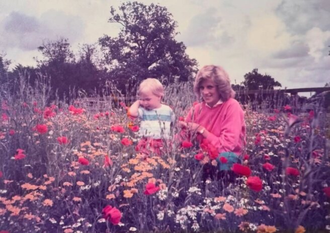 In honor of Mother's Day, Prince William posted a photo of his late mother on Instagram*, amid a escalating conflict with his brother, Prince Harry. The photo was taken in a flower field at Charles and Diana's main family estate, Highgrove. It shows a two-year-old William picking a bouquet with Princess Diana.