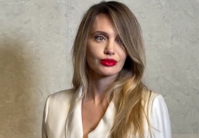 50-year-old Angelina Jolie attended a Tom Ford party in Shanghai. The actress posed for photographers in a white trench coat, with red lipstick, and was accompanied by the brand's creative director, Haider Ackermann.