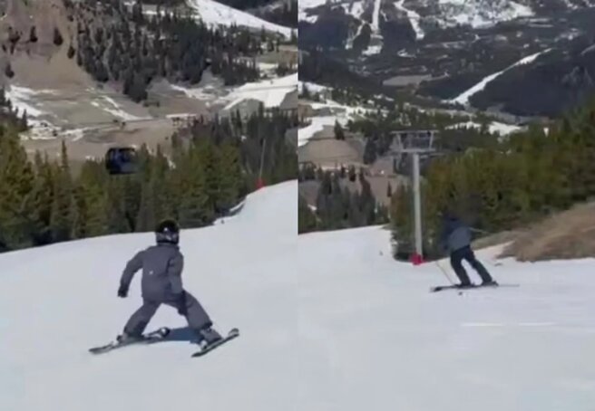 In the video, filmed from behind, the 41-year-old Duke of Sussex rides ahead along the snowy slopes, while his six-year-old son follows in a zig-zagging fashion. "My boys. You're learning fast, Archie! So proud of you," Markle, 44, captioned the clip.