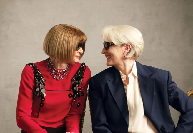 In the pictures, 76-year-old Meryl Streep and Anna Wintour pose for the lens of famous fashion photographer Annie Leibovitz in looks from Prada (on the cover), Chanel, Loro Piana, Dolce & Gabbana, and Manolo Blahnik.