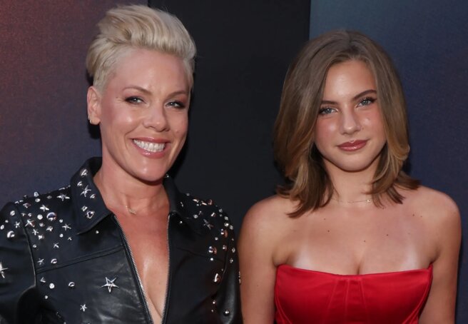 For the event, Pink chose a look that perfectly captures her style: a full-length skirt and a studded biker jacket. Meanwhile, the singer's 14-year-old daughter dazzled in a red bustier dress with a plunging neckline and laced sides. In the comments section of the premiere video, Pink's fans remarked on how much more grown-up the singer's daughter looks now.