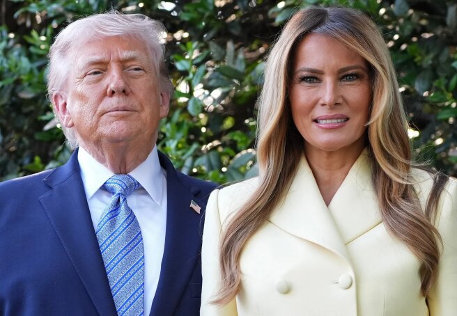 Melania Trump wore a yellow skirt and jacket set designed by Adam Lippes to meet the King and Queen. The First Lady also wore snakeskin-print stiletto pumps by Manolo Blahnik. The US President chose a blue suit for the meeting, similar to the one worn by Charles III, but with a light blue tie.