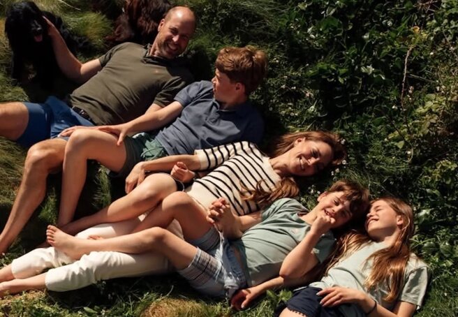 The photo shows the couple posing in summer clothes on the grass with 12-year-old Prince George, 10-year-old Princess Charlotte, eight-year-old Prince Louis, and their pets. "Celebrating 15 years of marriage," the Prince and Princess of Wales captioned the photo.